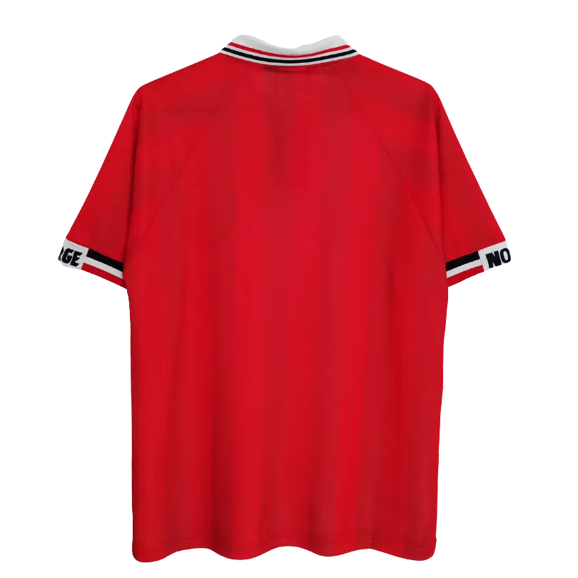 Camiseta roja titular retro de Noruega del 1998/99. El tejido mantiene la frescura tanto si estás animando en las gradas como si estás jugando sobre el campo.