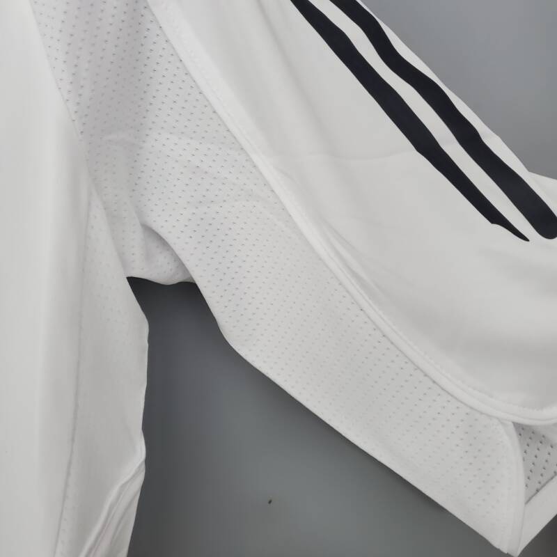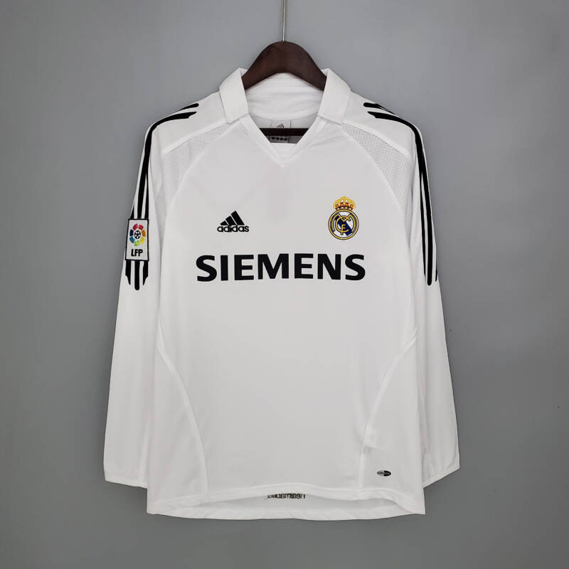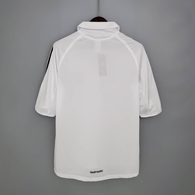 Camiseta blanca titular retro del Real Madrid 2005/06. El tejido mantiene la frescura tanto si estás animando en las gradas como si estás jugando sobre el campo.
