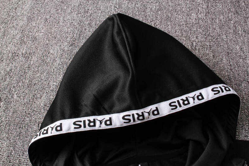 Esta chaqueta negra con capucha Jordan del PSG de la temporada 2020/21 se han confeccionado en tejido resistente y cálido, que también expulsa el sudor de la piel.