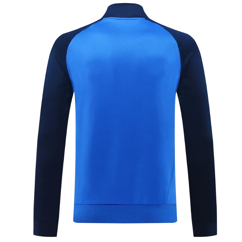 Esta nueva chaqueta azul de entrenamiento del Boca Jrs de la temporada 24/25 presenta un corte entallado y se ha confeccionado en tejido resistente y transpirable, que expulsa el sudor de la piel.