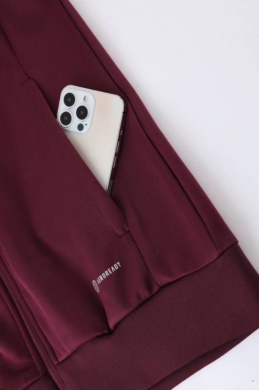 - Bolsillos con cremallera en las costuras laterales; cierre de cremallera; dobladillo de canalé; presilla para colgar