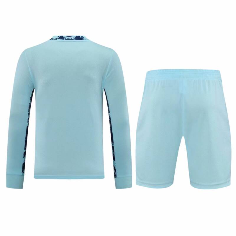 Este conjunto de portero celeste ofrece un diseño de ajuste entallado que muestra a todo el mundo a quién apoyas y rinde homenaje a los guardametas de talla mundial del Real Madrid. Su suave tejido transpirable mantiene la piel seca en el estadio o las calles.