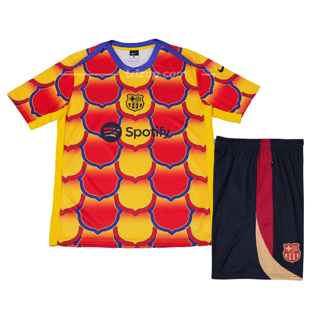 Este conjunto de entrenamiento del Barça 2024/25 ofrece un diseño de ajuste entallado que muestra a todo el mundo a quién apoyas de una manera llamativa. El tejido altamente transpirable capilariza el sudor para mantener la frescura cuando el partido se intensifica.