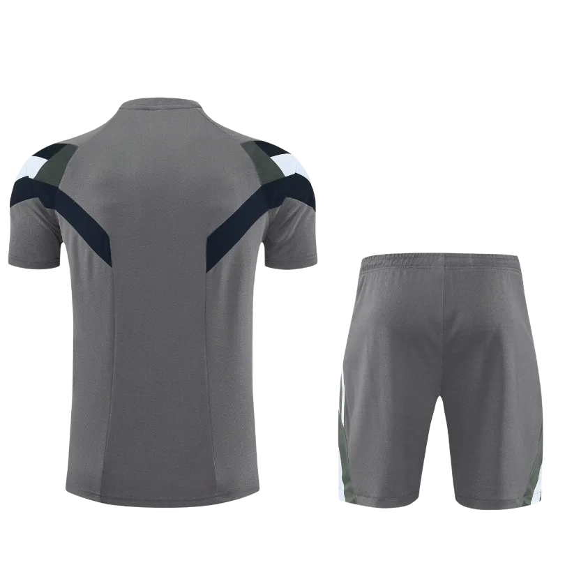 Este nuevo conjunto gris de entrenamiento del R. Madrid de la temporada 2024/25 ofrece un diseño de ajuste entallado que muestra a todo el mundo a quién apoyas de una manera llamativa. El tejido altamente transpirable capilariza el sudor para mantener la frescura cuando el partido se intensifica.