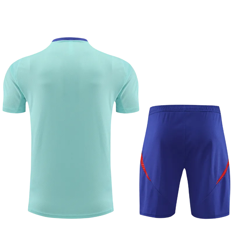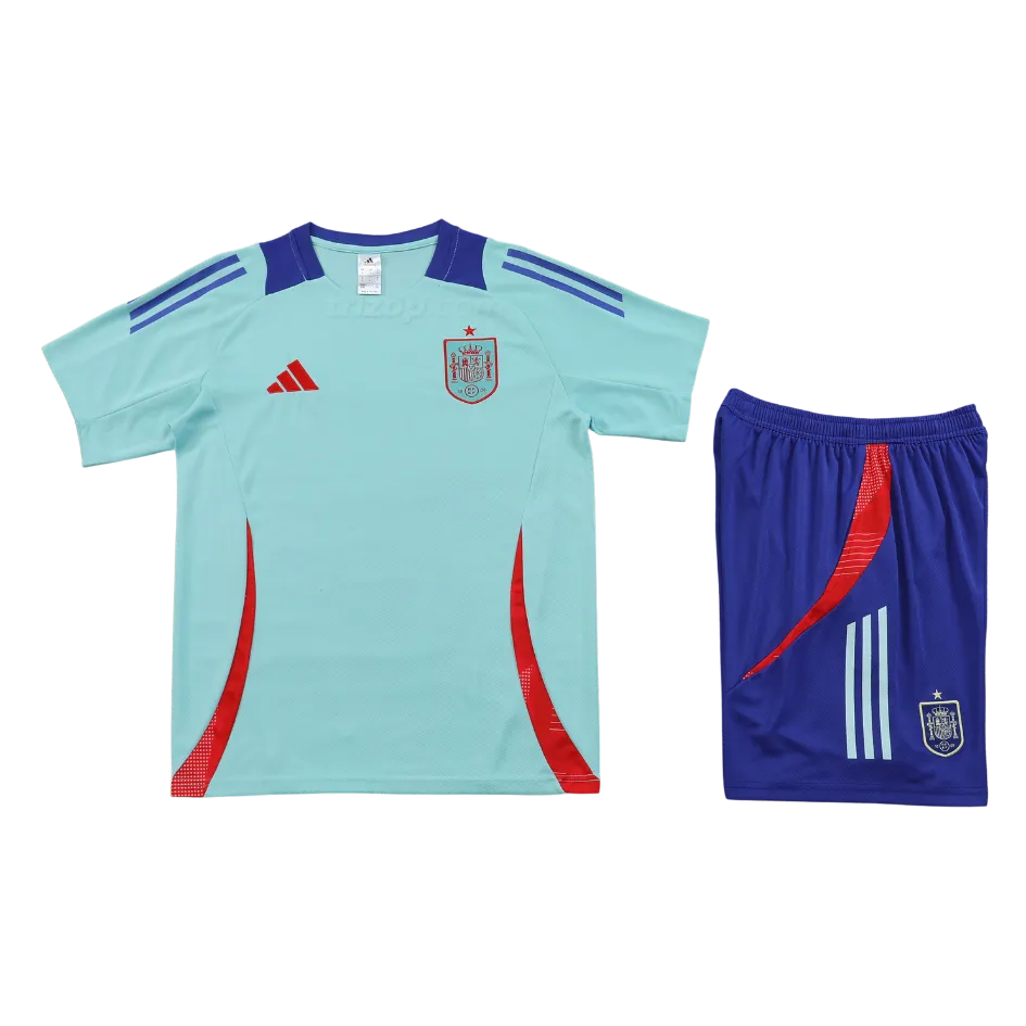 Este conjunto de entrenamiento de España 2024/25 ofrece un diseño de ajuste entallado que muestra a todo el mundo a quién apoyas de una manera llamativa. El tejido altamente transpirable capilariza el sudor para mantener la frescura cuando el partido se intensifica.