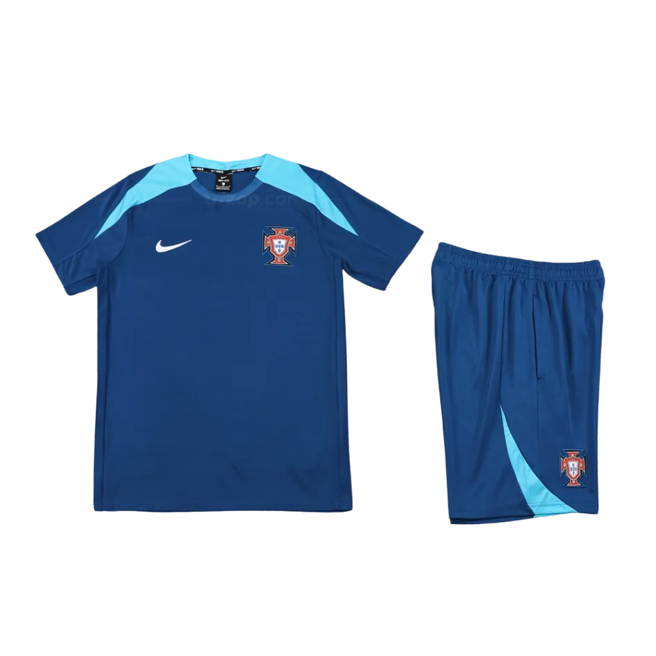 Este conjunto azul de entrenamiento de Portugal 2024/25 ofrece un diseño de ajuste entallado que muestra a todo el mundo a quién apoyas de una manera llamativa. El tejido altamente transpirable capilariza el sudor para mantener la frescura cuando el partido se intensifica.