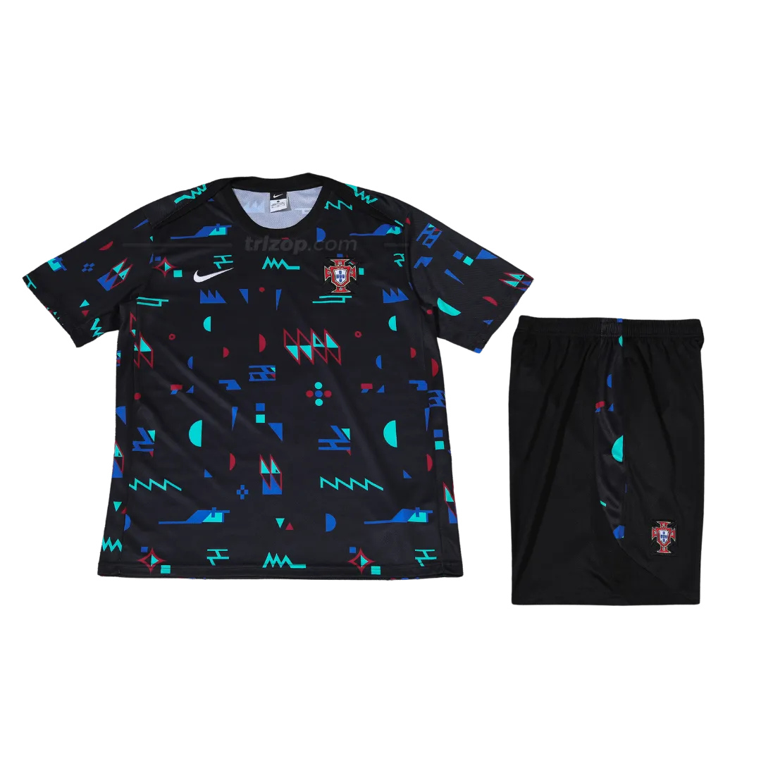 Este conjunto de entrenamiento del Portugal 2024/25 ofrece un diseño de ajuste entallado que muestra a todo el mundo a quién apoyas de una manera llamativa. El tejido altamente transpirable capilariza el sudor para mantener la frescura cuando el partido se intensifica.