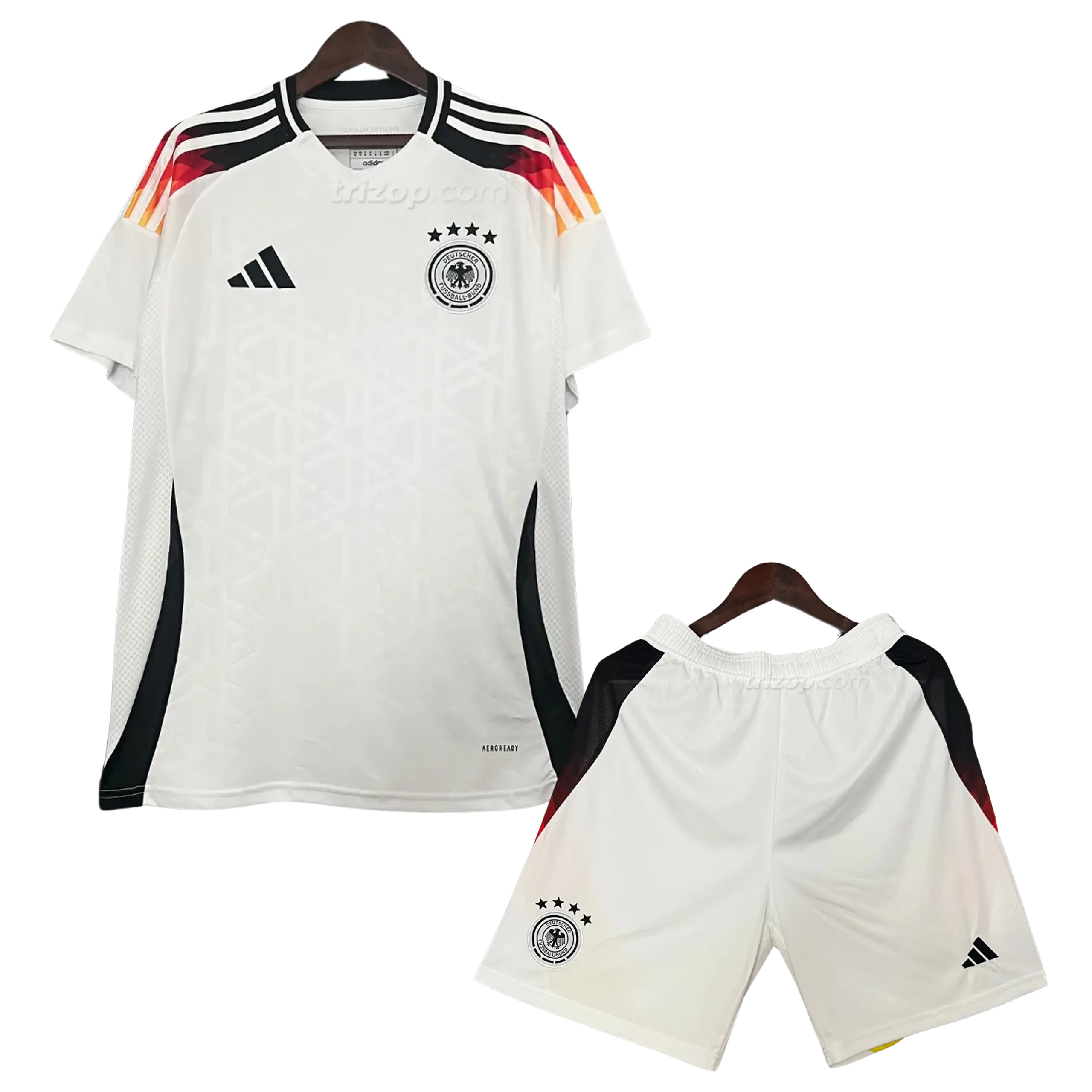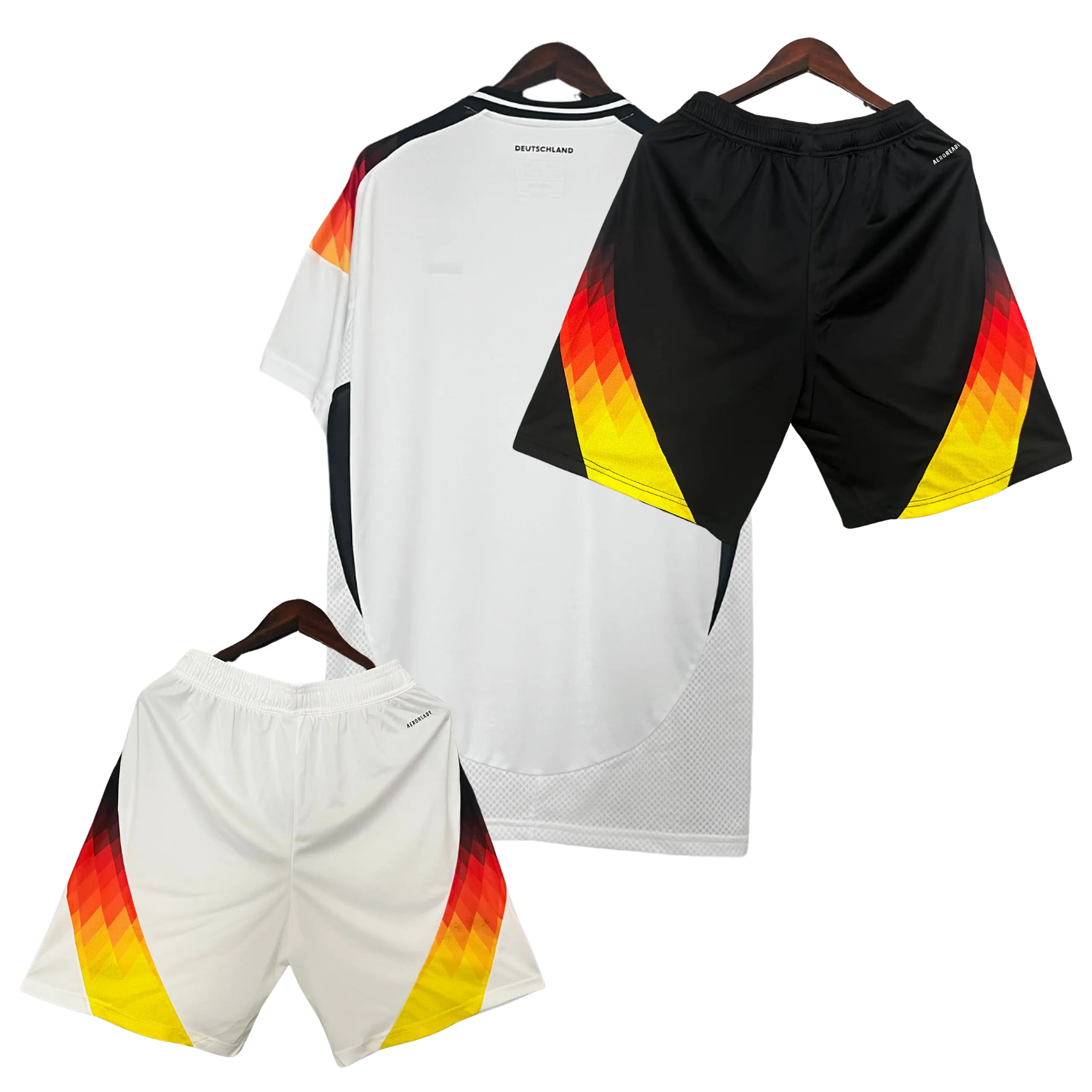Los cracks necesitan una equipación acorde a su potencial. Este nuevo conjunto local de Alemania incluye una camiseta y un pantalón corto, para que se puedan lucir como sus estrellas y referentes para esta Eurocopa 2024.