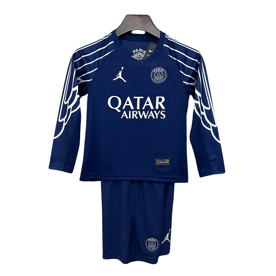 Las estrellas del futuro necesitan una equipación acorde a su potencial. Este conjunto kit azul suplente jordan del París Saint-Germain de la temporada 2024/25 incluye una camiseta y un pantalón corto, para que se puedan lucir como sus estrellas y referentes.