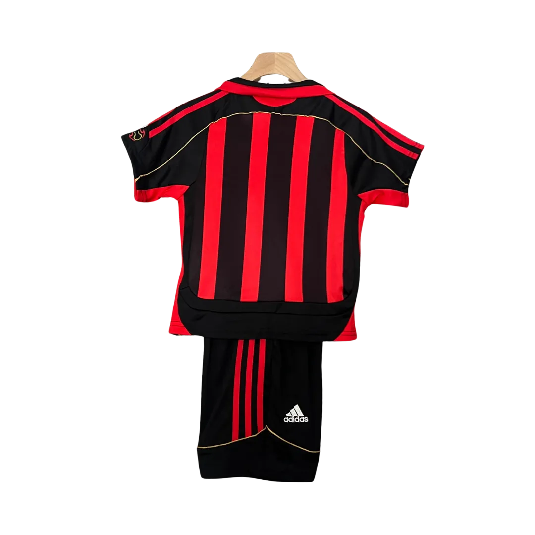 Las estrellas del futuro necesitan una equipación acorde a su potencial. Este conjunto local del AC Milan de la temporada 2006/07 incluye una camiseta y un pantalón corto, para que se puedan lucir como sus estrellas y referentes.