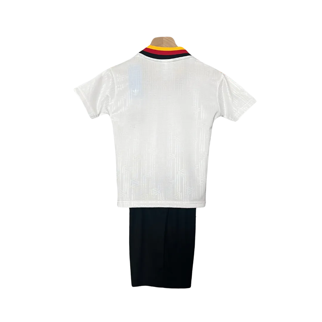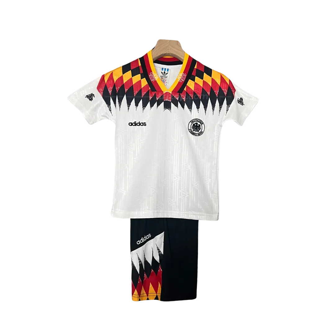 Las estrellas del futuro necesitan una equipación acorde a su potencial. Este conjunto local del Alemania de 1994 incluye una camiseta y un pantalón corto, para que se puedan lucir como sus estrellas y referentes.