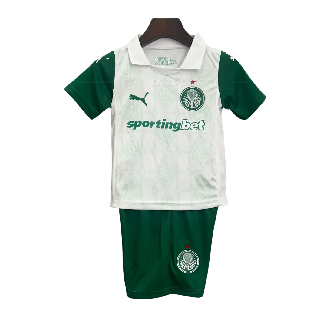 Las estrellas del futuro necesitan una equipación acorde a su potencial. Este nuevo conjunto blanco estilo polo del Palmeiras de la nueva temporada 2025/26 incluye una camiseta y un pantalón corto, para que se puedan lucir como sus estrellas y referentes.