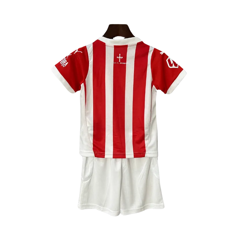 Las estrellas del futuro necesitan una equipación acorde a su potencial. Este nuevo conjunto rojiblanco local del Gijón de la temporada 2024/25 incluye una camiseta y un pantalón corto, para que se puedan lucir como sus estrellas y referentes.