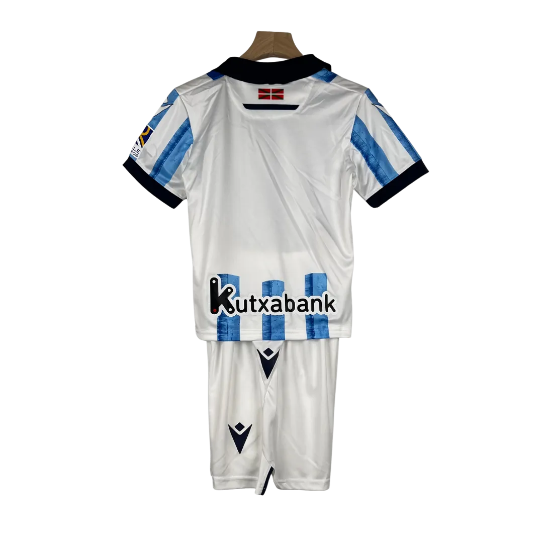 Las estrellas del futuro necesitan una equipación acorde a su potencial. Este nuevo conjunto local nuevo de la Real Sociedad de la temporada 2023/24 incluye una camiseta y un pantalón corto, para que se puedan lucir como sus estrellas y referentes.