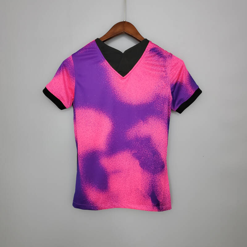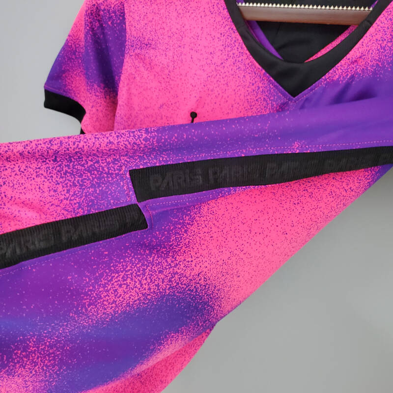 Con inspiración en la galaxia de la Vía Láctea y bajo el concepto de representar “una nueva dimensión en el fútbol parisino”. Anima a tu equipo con la exclusiva cuarta equipación del París Saint-Germain Femenino. El tejido mantiene la frescura tanto si estás animando en las gradas como si estás jugando sobre el campo.