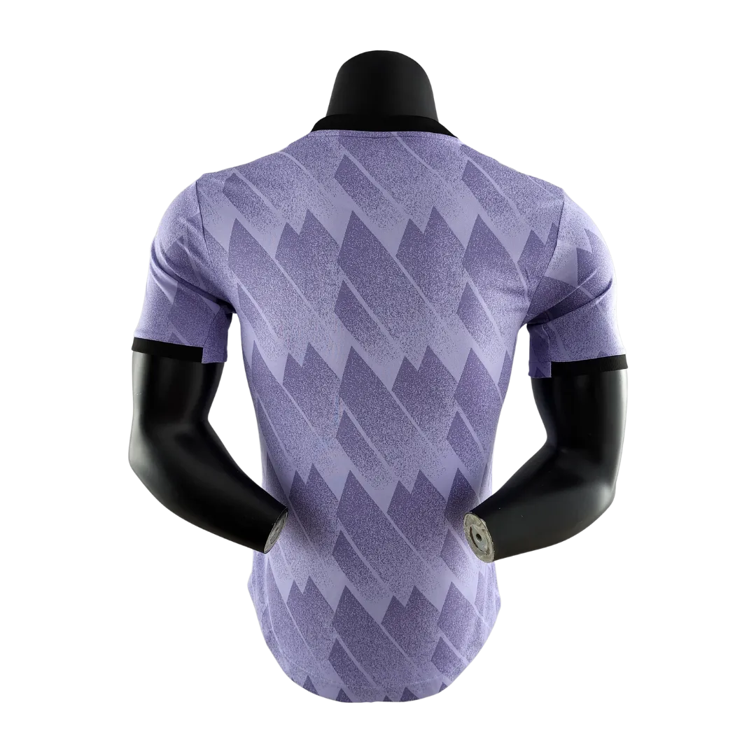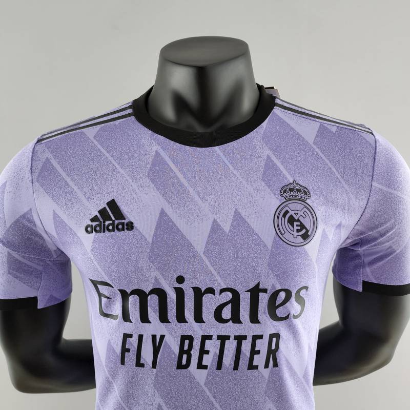 La camiseta morada suplente que utilizarán los 14 veces campeones de Europa en el terreno de juego de la temporada 2022/23 ofrece el mismo diseño que utilizan tus jugadores favoritos. El diseño elástico y estilizado se adapta a tus movimientos y el tejido transpirable capilariza el sudor y se seca excepcionalmente rápido para ofrecer el máximo rendimiento.