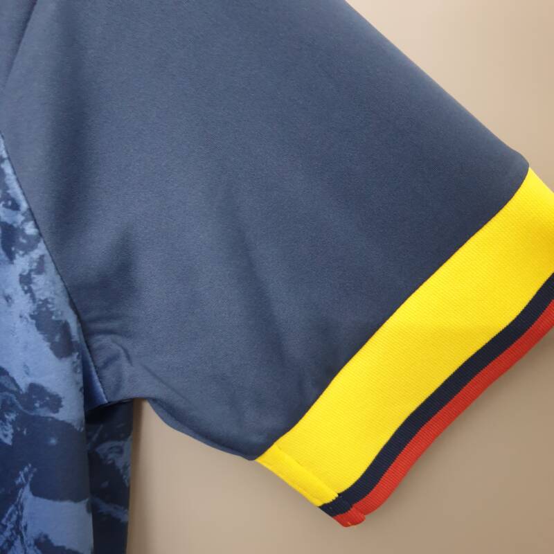 En estas eliminatorias rumbo a Qatar anima a tu equipo con la segunda equipación de la selección colombiana. El tejido mantiene la frescura tanto si estás animando en las gradas como si estás jugando sobre el campo.